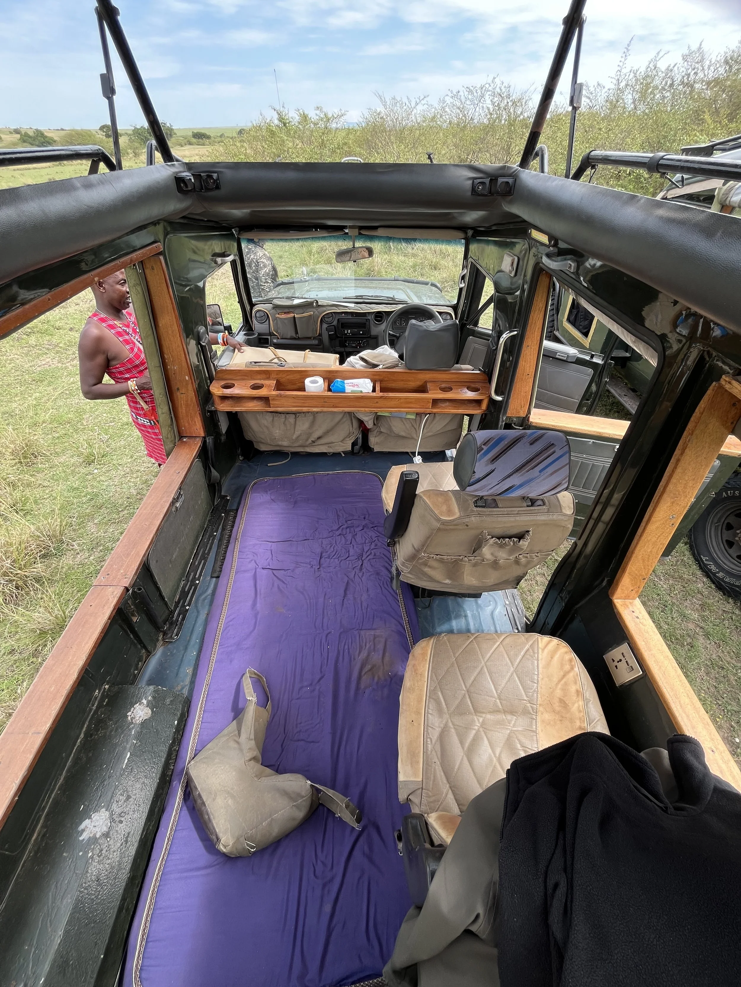 Ein Blick ins Fahrzeuginnere. Die linke Seite ist die Panoramaseite zum Fotografieren. Die fehlenden Fenster und die Matratze erlauben tiefe Aufnahmeperspektiven.