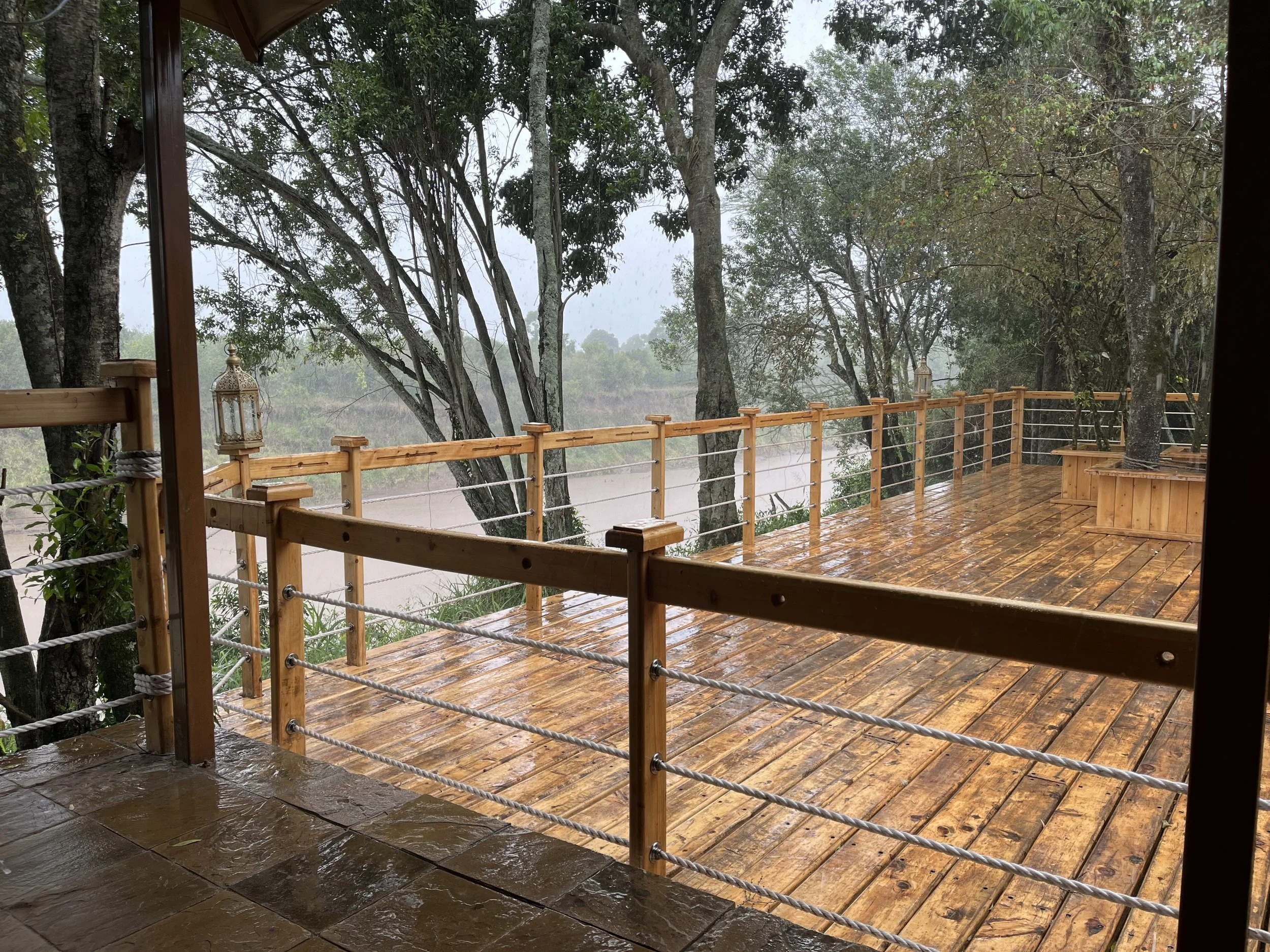 In der Mittagspause ergoß sich ein heftiger Schauer - die kleine Regenzeit ließ grüßen. Wir saßen im Trockenen.