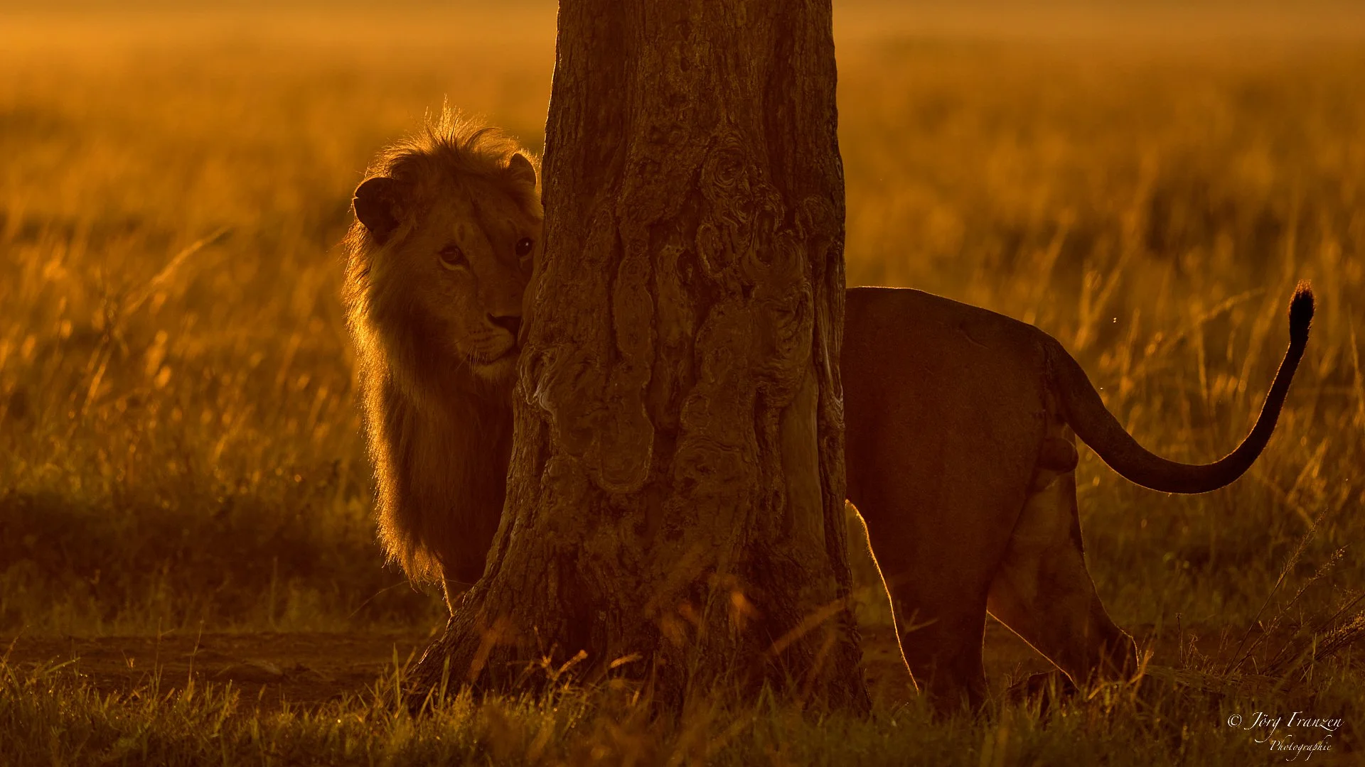 Es begann kurz vor Sonnenaufgang mit zwei Löwenmännchen, die einen verspielten Umgang miteinander pflegten - vielleicht waren es Brüder. Wir begleiteten sie eine ganze Weile und hatten viele Gelegenheiten, Fotos zu schießen.