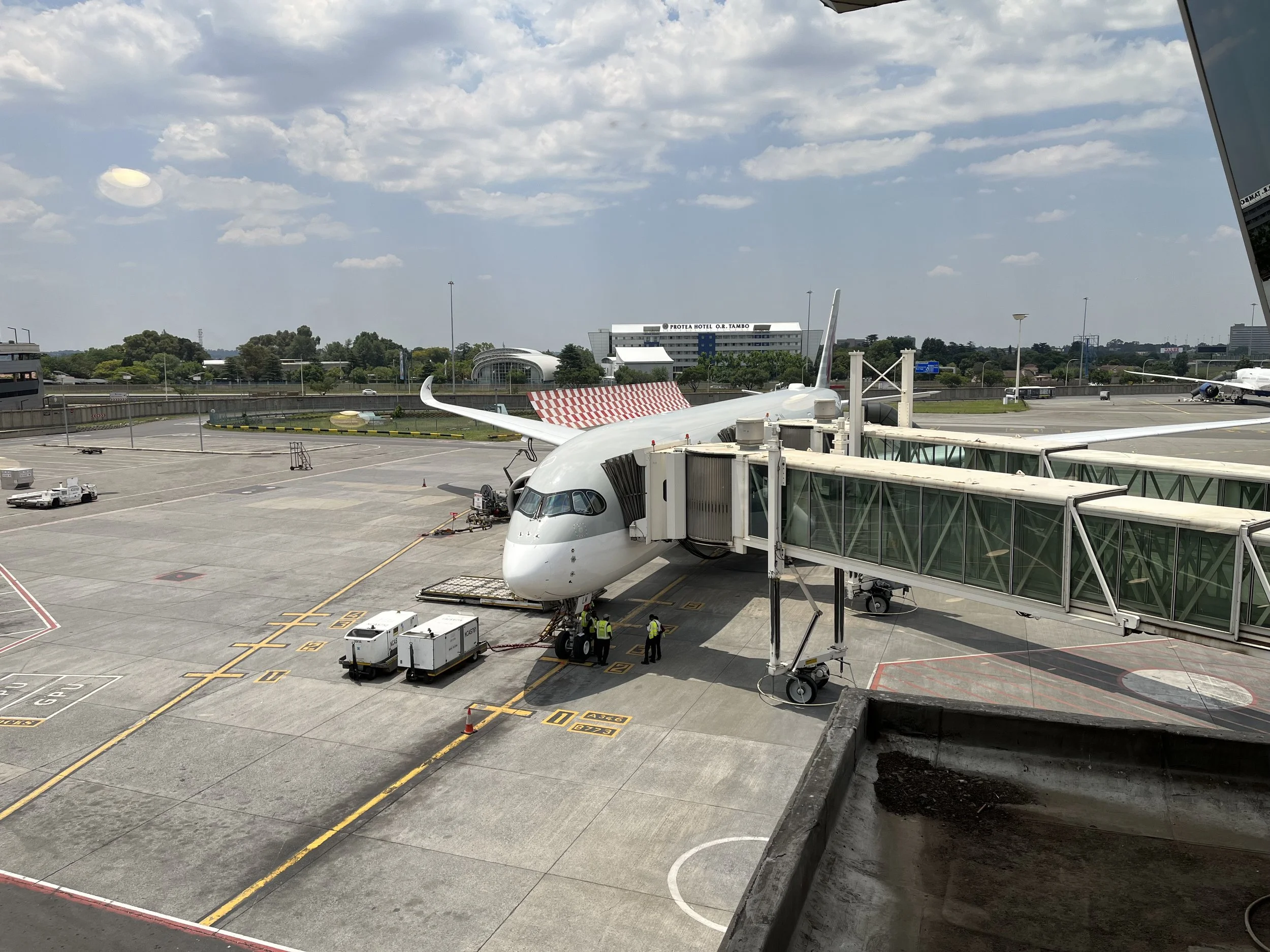 Beim Auftanken: unser Airbus A350-900 für den Flug von Johannesburg nach Doha