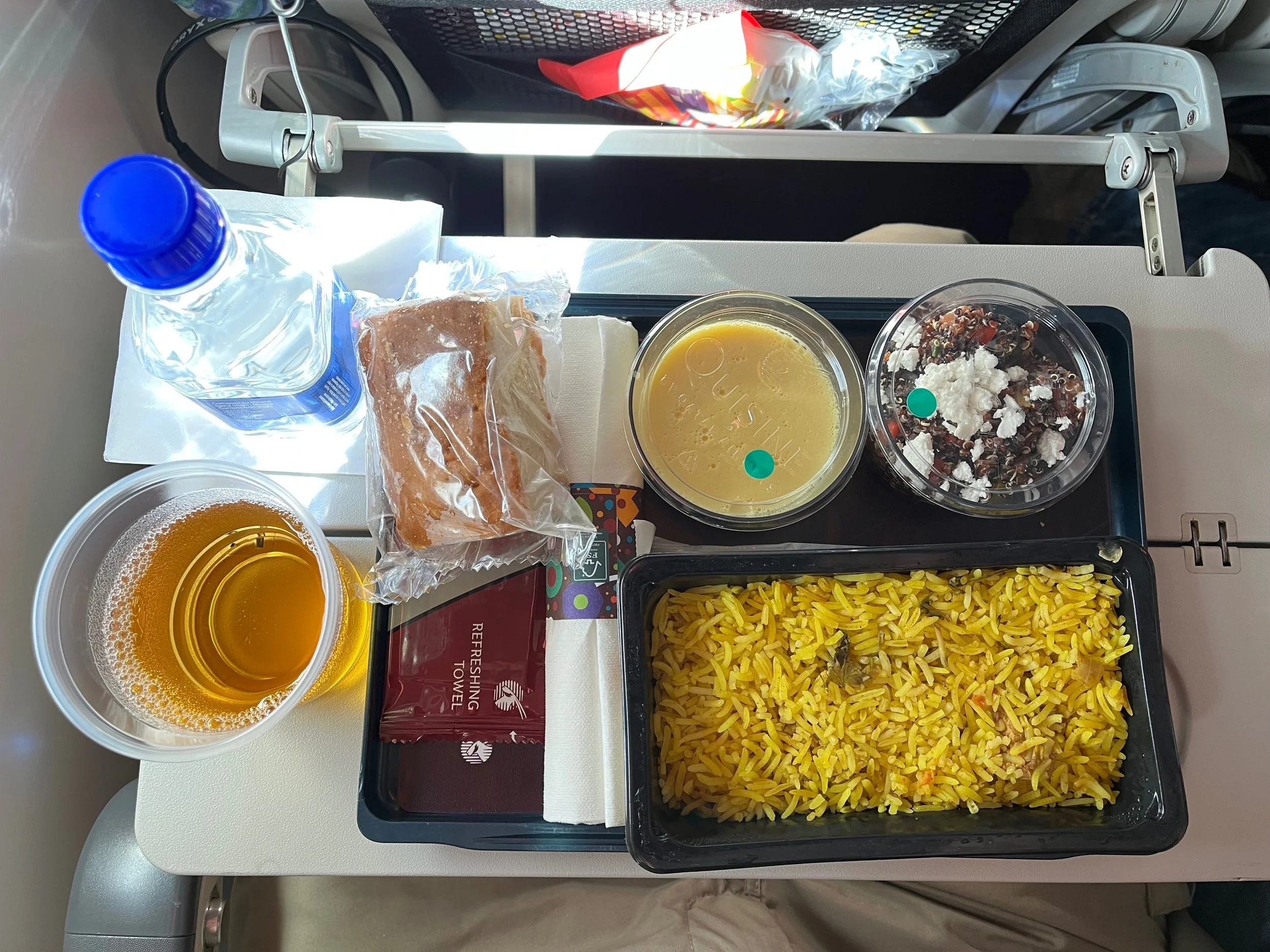 Kein Taxi - kein nichts. Der zwischenzeitlich eingetroffene Geschäftsführer des Hotels war so nett, uns für den Fall der Fälle einen alternativen Transfer anzubieten. Wollten wir doch zeitig am Flughafen sein, weil wir den gesamten Check-In-Prozess durchlaufen mussten. Zunächst riefen wir aber unsere Reiseleitung an, die uns gestern noch ein “Ruft mich notfalls an!” mit auf den Weg gegeben hatte. Der Fahrer, der noch immer aufgetaucht war, tauchte heute zum ersten Mal nicht auf. Die Reiseleitung konnte aber kurzfristig einen Ersatz beschaffen. Um 06:45 Uhr kam dann endlich unser Taxi. Vor lauter Verzweiflung hatte ich in der Zwischenzeit schon angefangen, Teile des Lunch-Pakets zu vertilgen.
