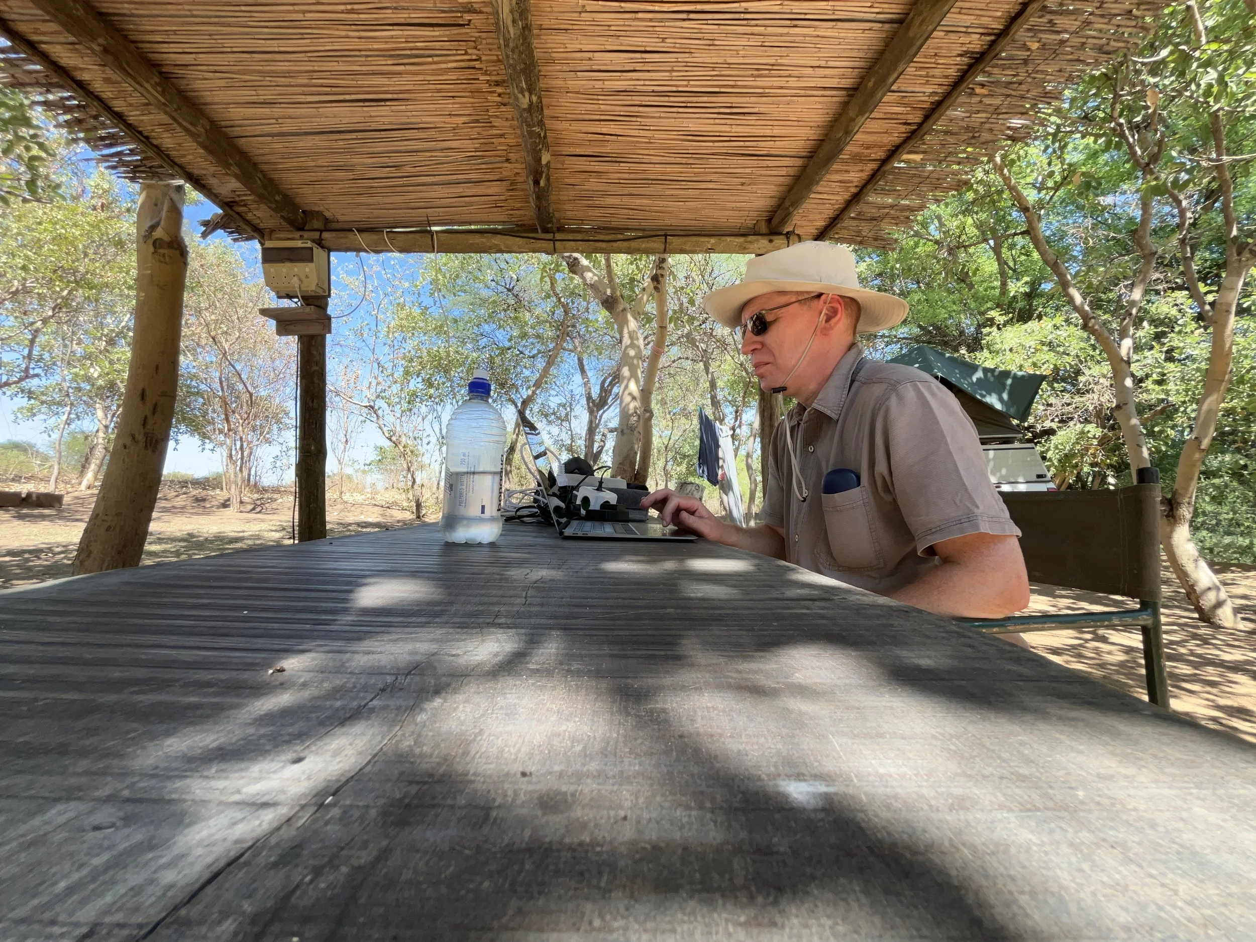 Nach einem sehr guten Frühstück im Hauptgebäude stellte sich die Frage, was wir mit dem heutigen, “autofreien” Tag anfangen sollten. Der von der Angestellten beschriebene, hier buchbare Bootsausflug klang nicht sonderlich attraktiv, so dass wir diese Option nicht gezogen haben. Die Fahrt zum in Luftlinie recht nahe gelegenen “Horseshoe” (Lagune am Kwando-Fluss) wäre aufgrund der wenigen Brücken über den Kwando zu einer riesigen Umwegfahrt ausgeartet - mit entsprechend wenig Zeit vor Ort. Letztendlich haben wir dann beschlossen, den Vormittag im Camp zu verbringen und nachmittags in den nahegelegenen Mudumu National Park zu fahren.
